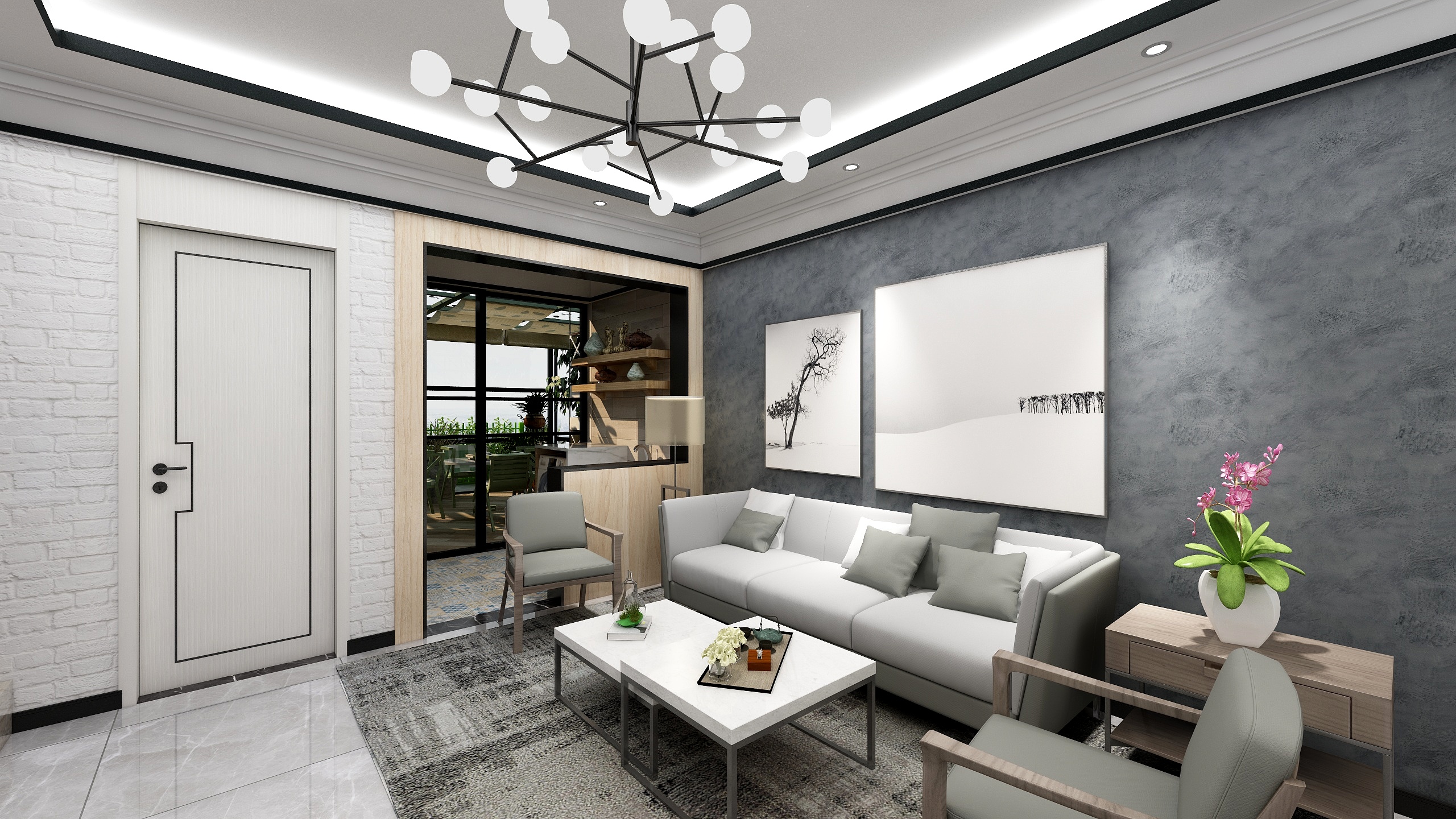客廳墻壁采用蒙太奇藝術(shù)涂料灰泥系列,以灰色為基礎(chǔ)顏色,展現(xiàn)戶(hù)主成熟穩(wěn)重、低調(diào)內(nèi)斂的性格。這樣的素凈的顏色,使人更加安心,繁忙一天的工作結(jié)束后,暫短的忘卻工作的壓力、焦慮,享受慢節(jié)奏的生活,也是一種心靈的治愈了。白色的門(mén)、沙發(fā)、壁畫(huà),色彩上相互協(xié)調(diào)一至,提亮整體光線(xiàn),顯得更加干凈,視覺(jué)上空間也變大了,夠酷!