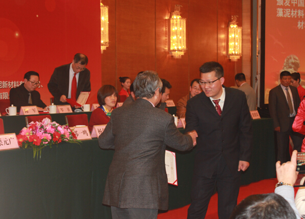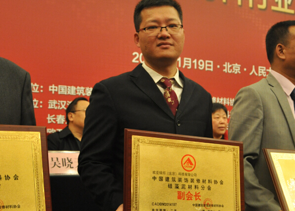 中國建筑裝飾裝修材料協會會長郭一鳴為中國硅藻泥行業協會常務副會長趙廣全頒發證書