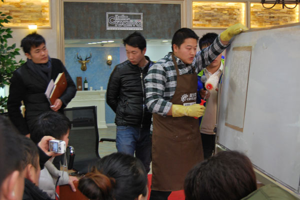 一個優(yōu)秀的經(jīng)銷商不僅需要在蒙太奇硅藻泥·手工壁紙總部學(xué)習(xí)產(chǎn)品理論知識、專業(yè)施工節(jié)能以及市場營銷策劃等方面的知識,還需要在專業(yè)老師的指導(dǎo)下,真正實現(xiàn)理論與實踐的結(jié)合。