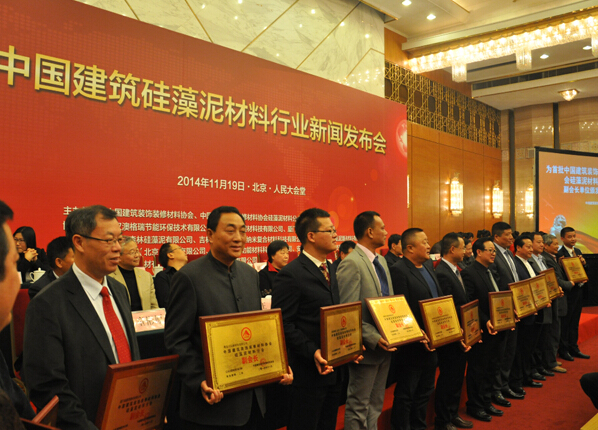 同時,新聞發布會上還進行了揭牌、硅藻泥材料分會副會長單位、理事名單并頒發銅牌及證書、簽署自律公約等一系列環節。