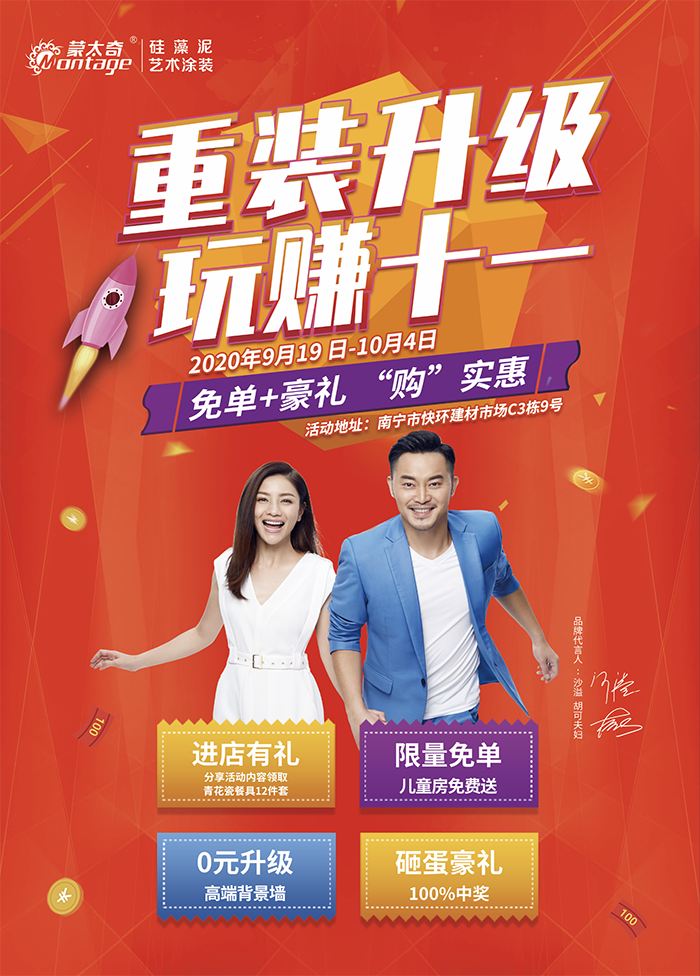 重裝開業(yè),蒙太奇南寧興寧二店推出“重裝升級 玩賺十一”活動,分享實惠進店有禮、0元升級高端藝術(shù)背景墻、砸金蛋抽獎......眾多福利只為讓您用合適的價格享受高品質(zhì)的家居環(huán)境。許多消費者聽聞此次活動優(yōu)惠力度之大,前來咨詢洽談后,紛紛下單。